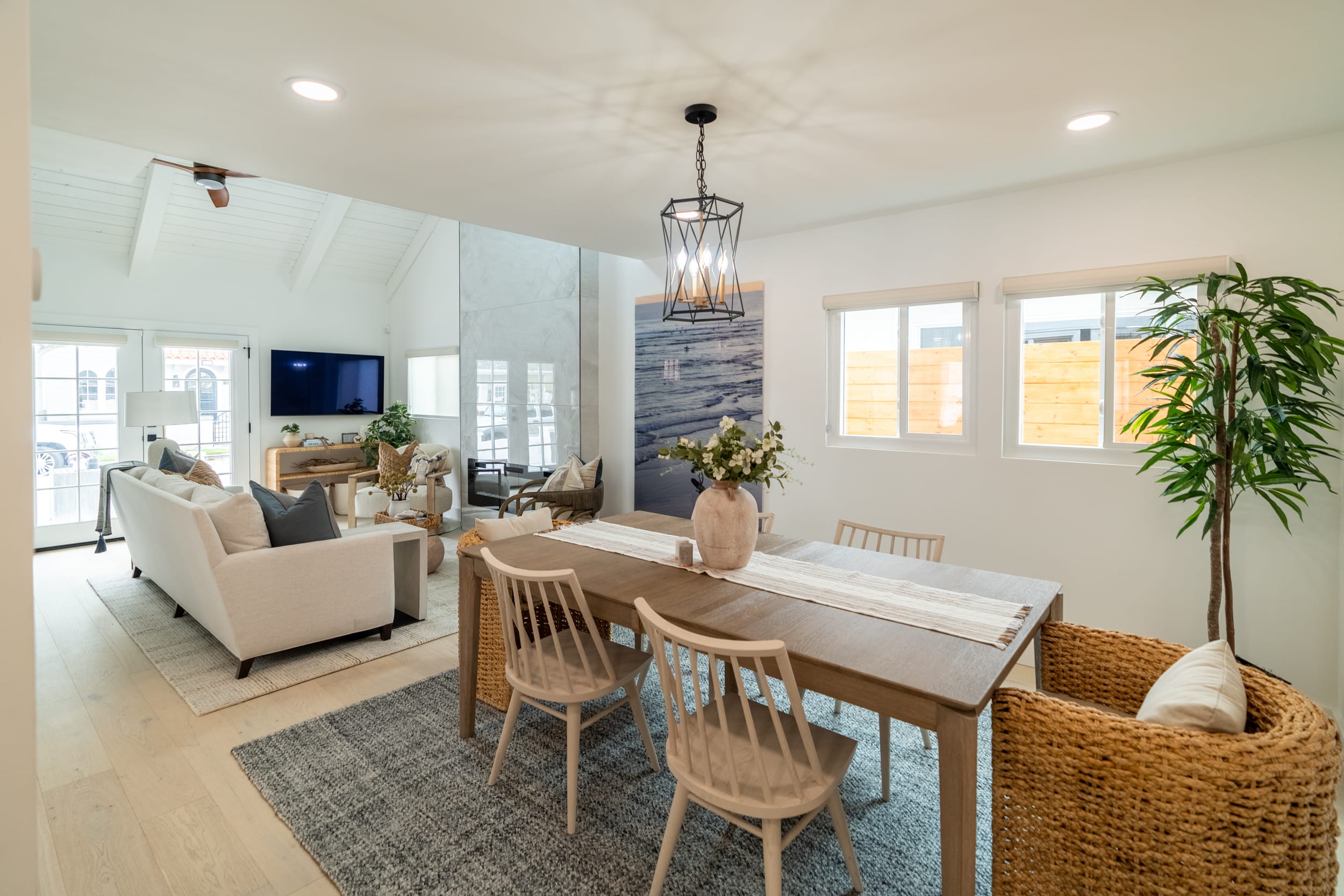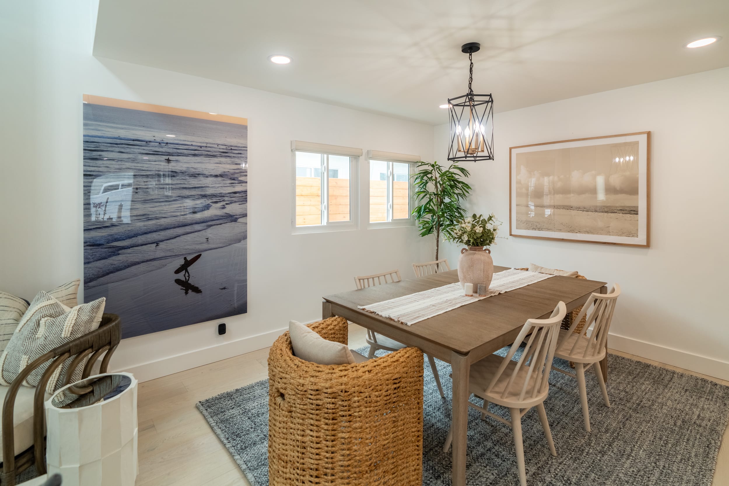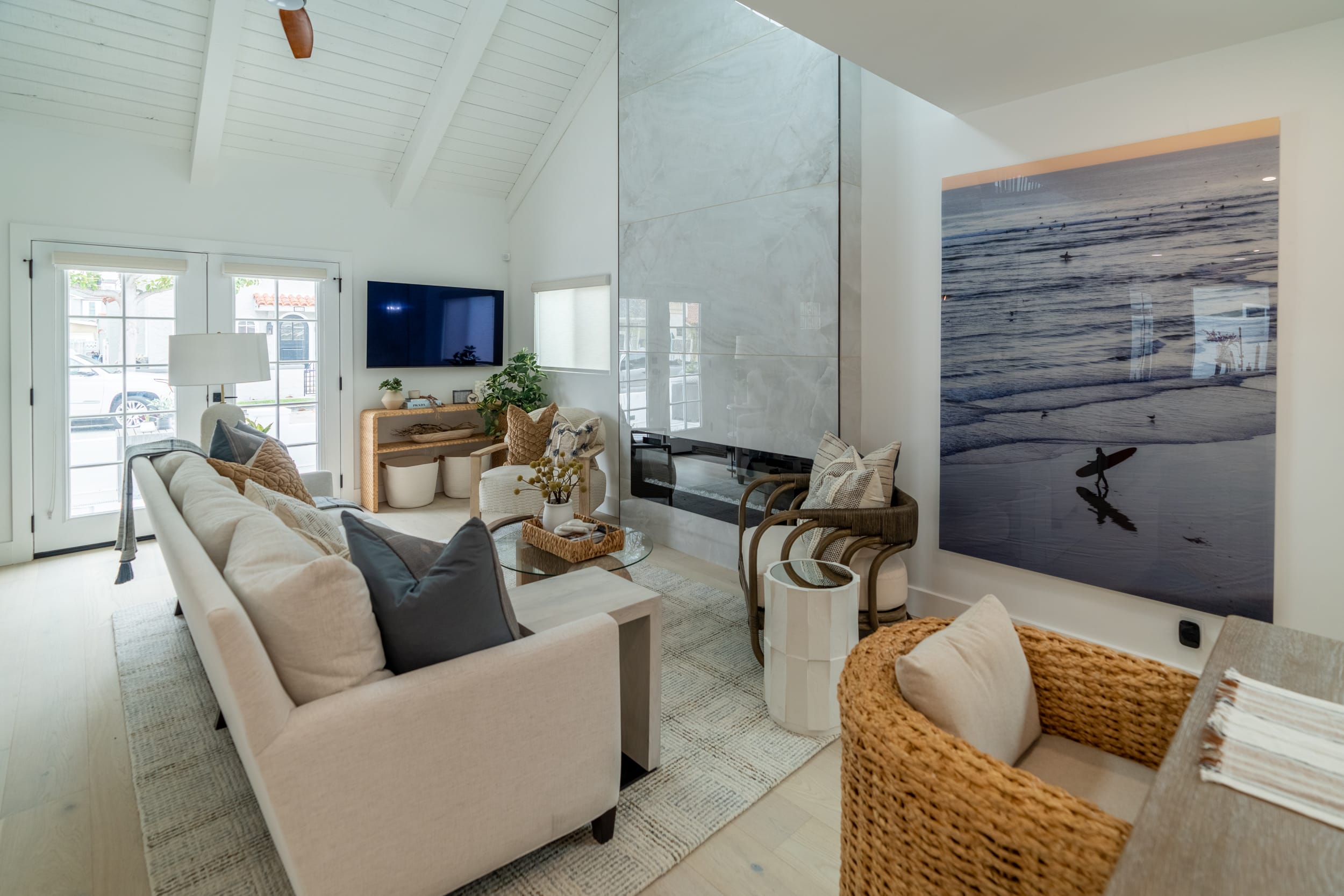 Adrien is a fully remodeled 1950s bungalow that provides the quintessential Newport Beach experience. Just steps away from Balboa Beach, Newport Bay, and the Wedge, this coastal gem takes serene, beachy vibes to the next level. You'll instantly feel at home in this perfectly manicured south-end neighborhood of the Balboa Penisula.