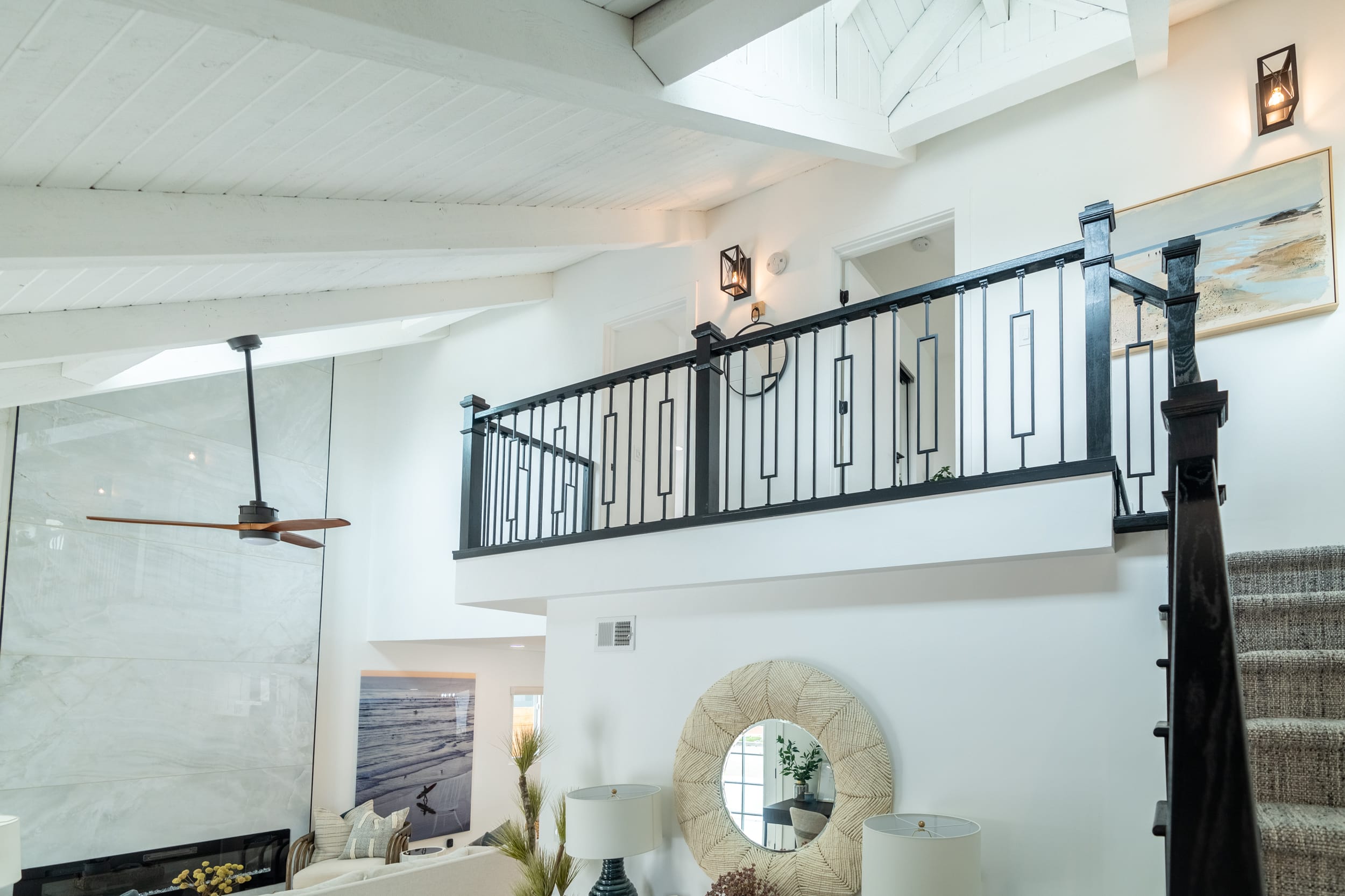 Gorgeous cathedral ceilings, hardwood floors, quality furniture pieces, and exquisite finishes ensure a memorable experience the moment you step through the front door. This 4 bedroom 4 bathroom home that includes a bunkroom accommodates up to 10 guests. Prepare fresh seafood meals while taking in the coastal breeze in Adrien's fully stocked gourmet kitchen. After a long day at the beach wash off in the outdoor shower and head up to the private terrace with outdoor fireplace to watch the breathtaking Southern California sunsets night after night.