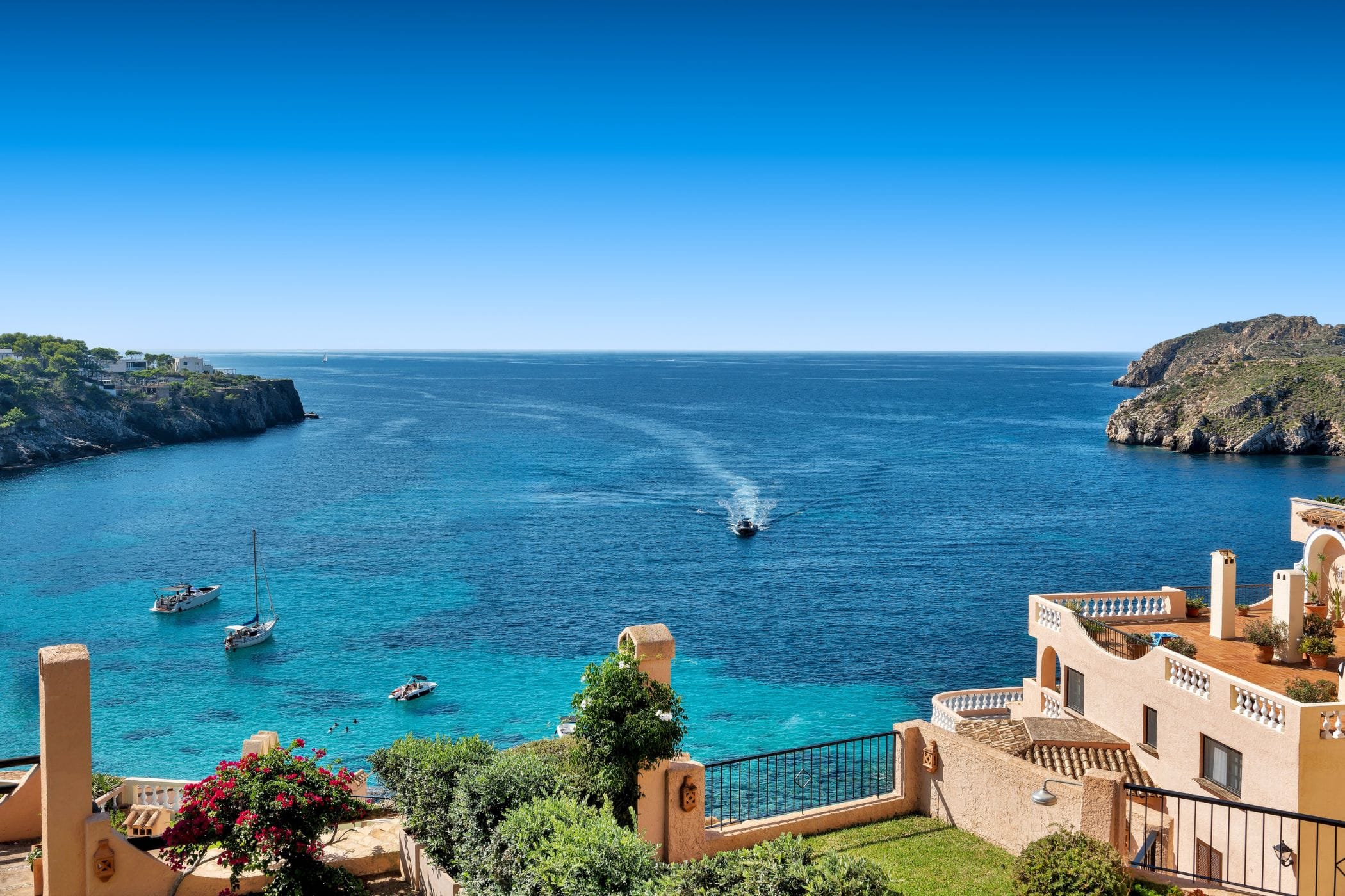 Direct access to the small bathing bay allows for spontaneous swimming in the sea, while the fine sandy beach of Santa Ponsa is only a few minutes away. There are also several golf courses and tennis and padel courts nearby. For families, the jungle and water parks ensure additional amusement– all in one of the most desired locations in Mallorca.