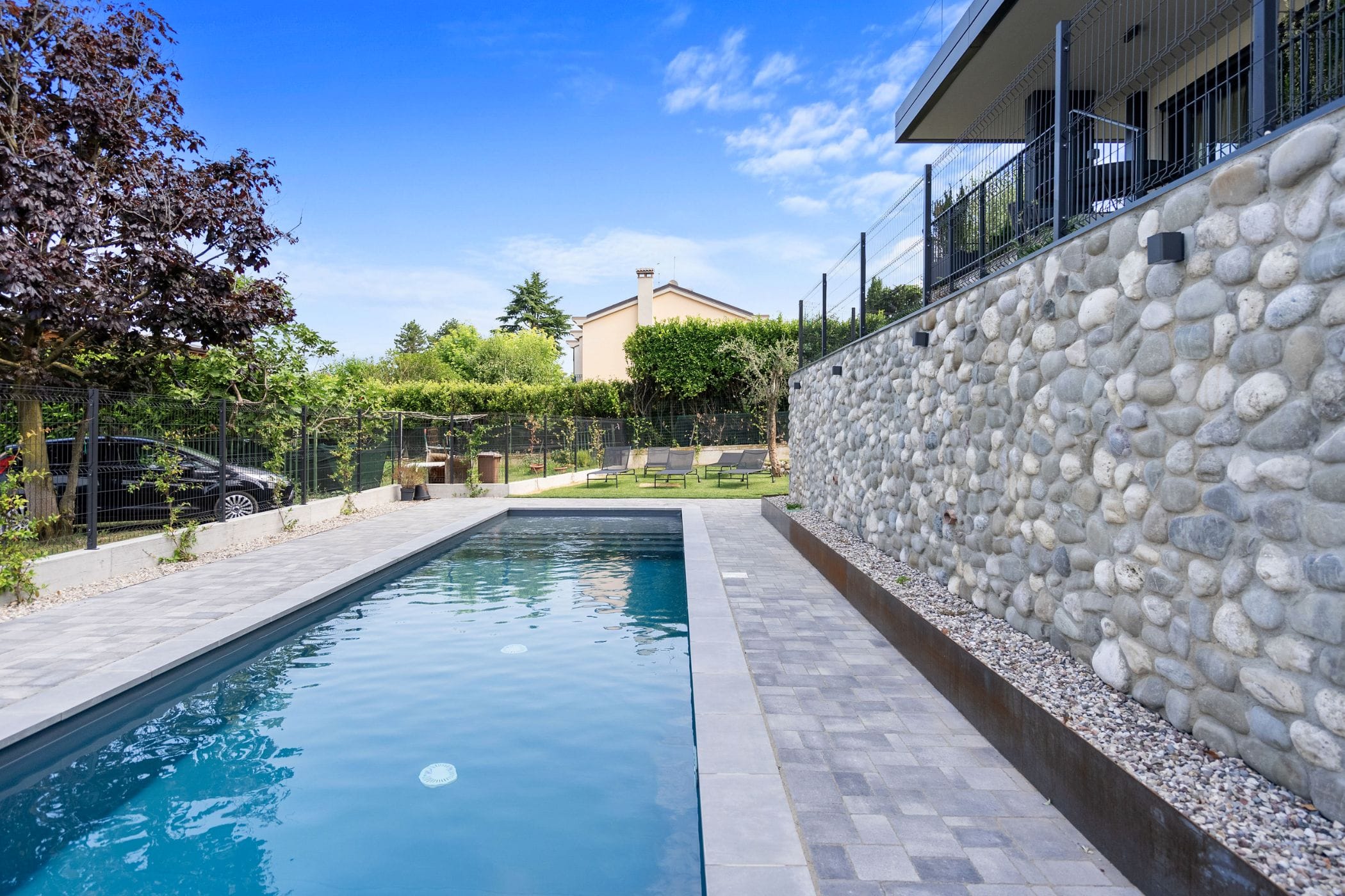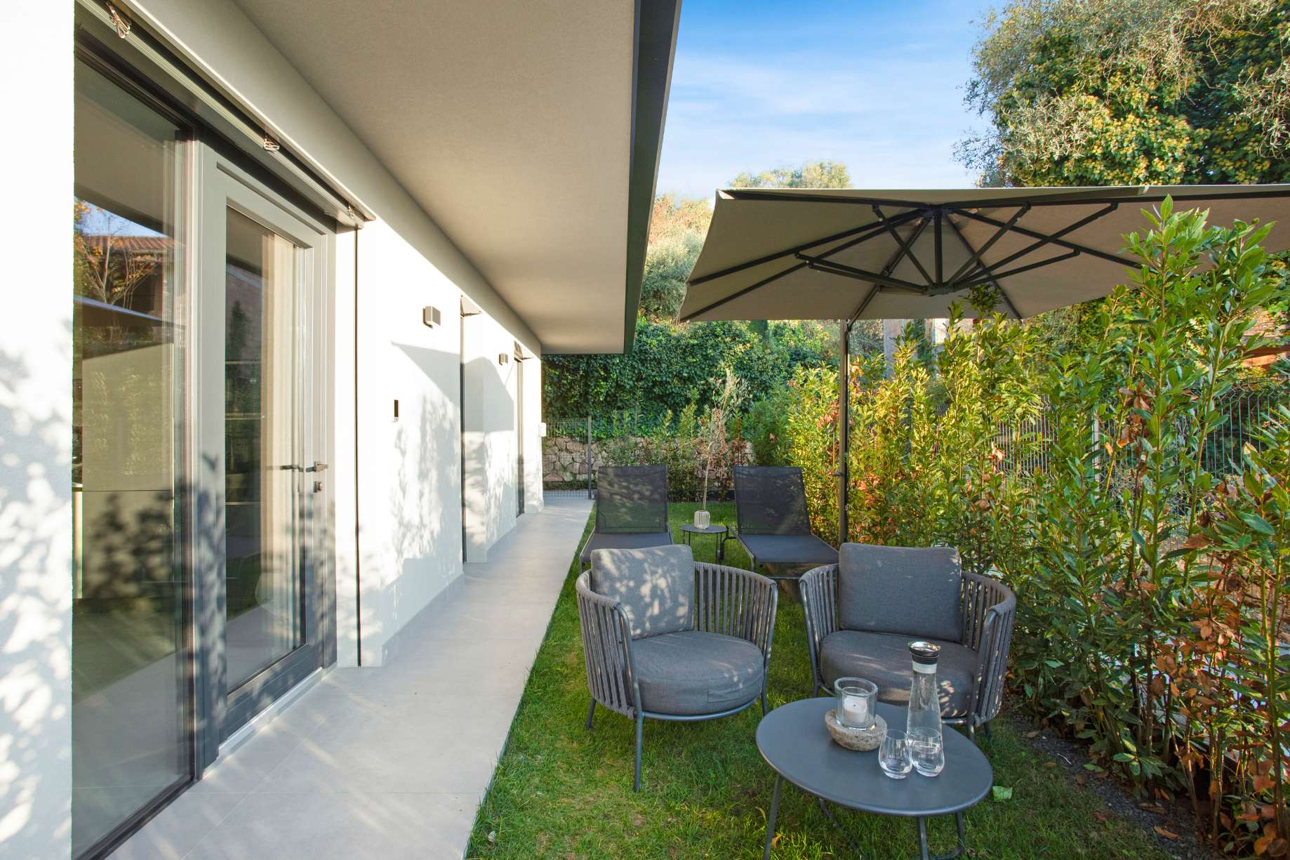 This exclusive new-build garden apartment is in a quiet location on the eastern shore of Lake Garda, just a few minutes from the historic centre of Albisano. It's only 7 minutes by car to the lakefront. A particular highlight is the communal roof terrace, from which you can enjoy a fantastic panoramic view of the lake and the surrounding mountains.