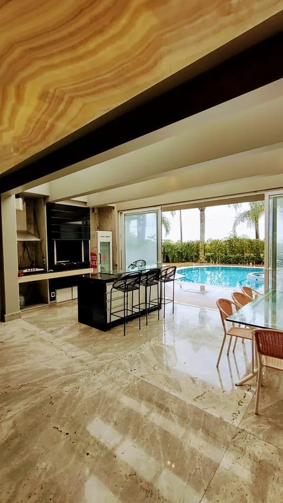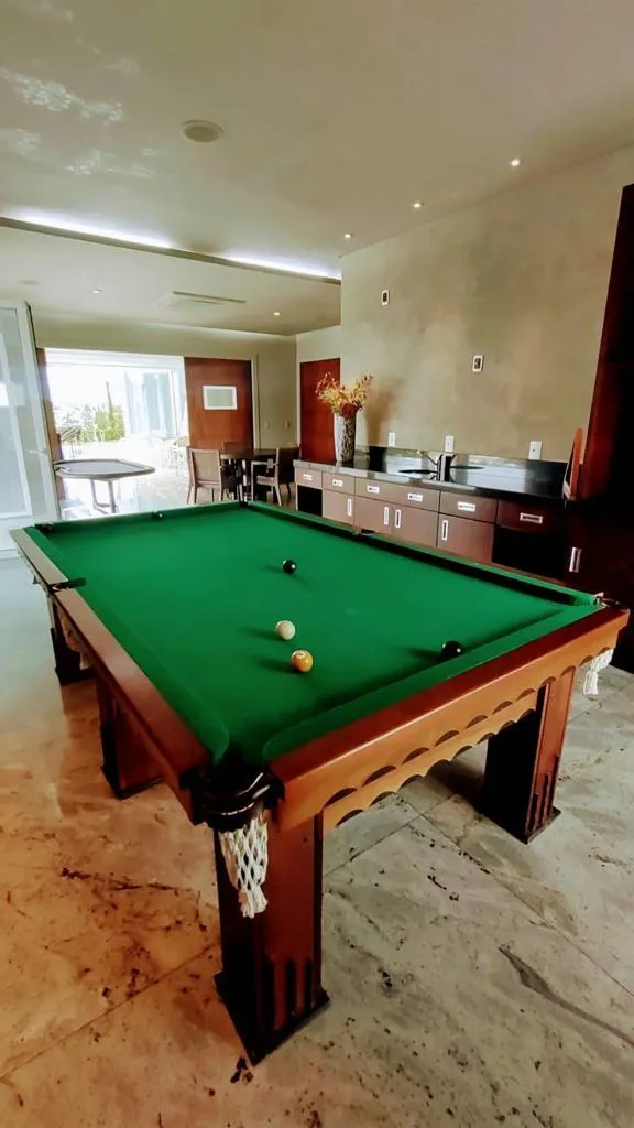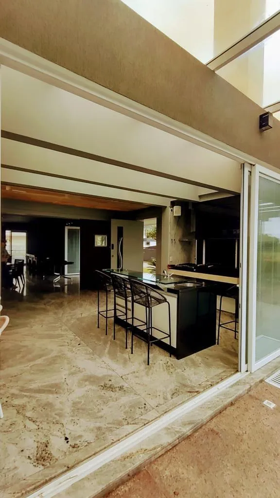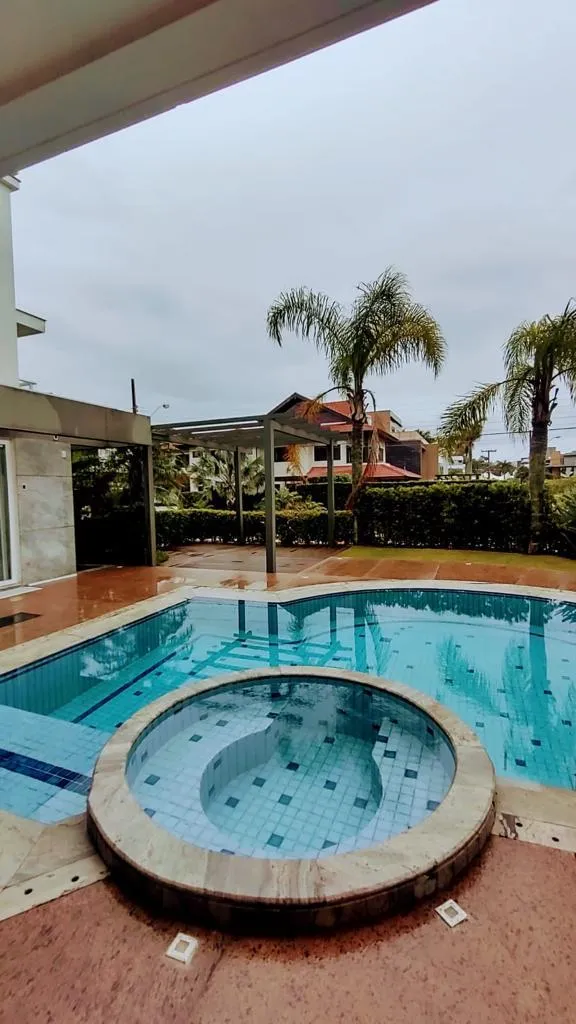 Casa Jurerê is located just a few meters from Jurerê Internacional Beach. With a total area of 1,050m², the house has three floors: the ground floor includes a guest restroom, a gourmet space, a billiard table, an open-plan kitchen, a barbecue area, a swimming pool, a spa, an aquarium, a veranda, a kennel, and a garden. The upper floor has four master suites with walk-in closets and balconies with ocean views, one of which includes a jacuzzi. The lower floor features five garage spaces, a wine cellar, a fitness center, two bathrooms, one bedroom, a nightclub, a laundry room, a bicycle storage area, and a storage room.