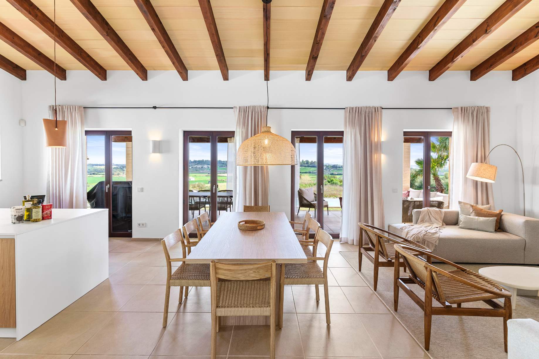 The country house offers a lot of space for family and friends on 240m² of living space. Several spacious terrace areas surrounded by a green outdoor area ensure perfect inside-out living. Four bedrooms - all with en suite bathrooms - and a large living and dining area with an open kitchen offer comprehensive living comfort. A highlight is the large infinity pool, which offers fun and cooling off.