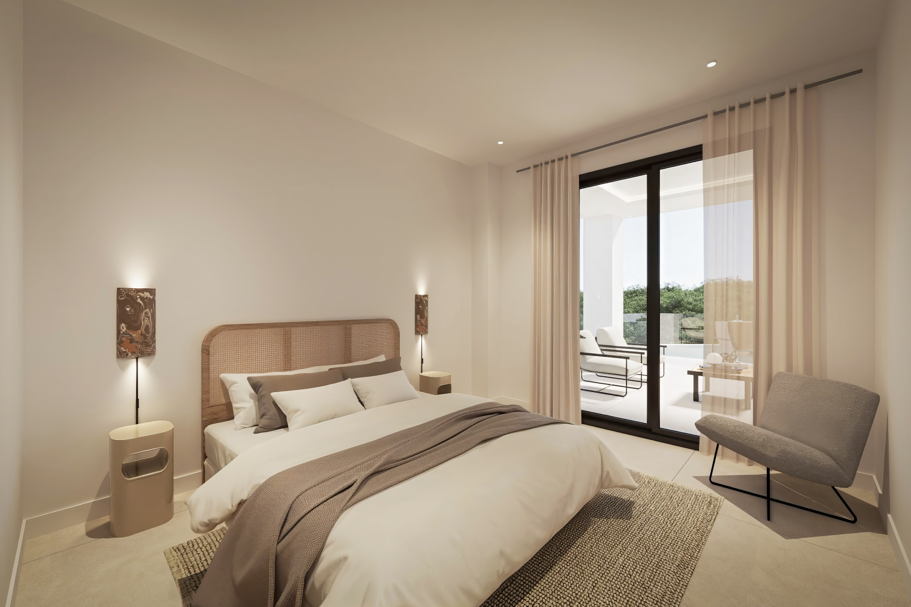 High-quality Porcelanosa finishes allow for some customization, ensuring a stylish yet functional design. Located in Cala Llenya, San Carlos (Santa Eulalia del Río), just a 5-minute walk from the beach, it will be move-in ready by late 2025.