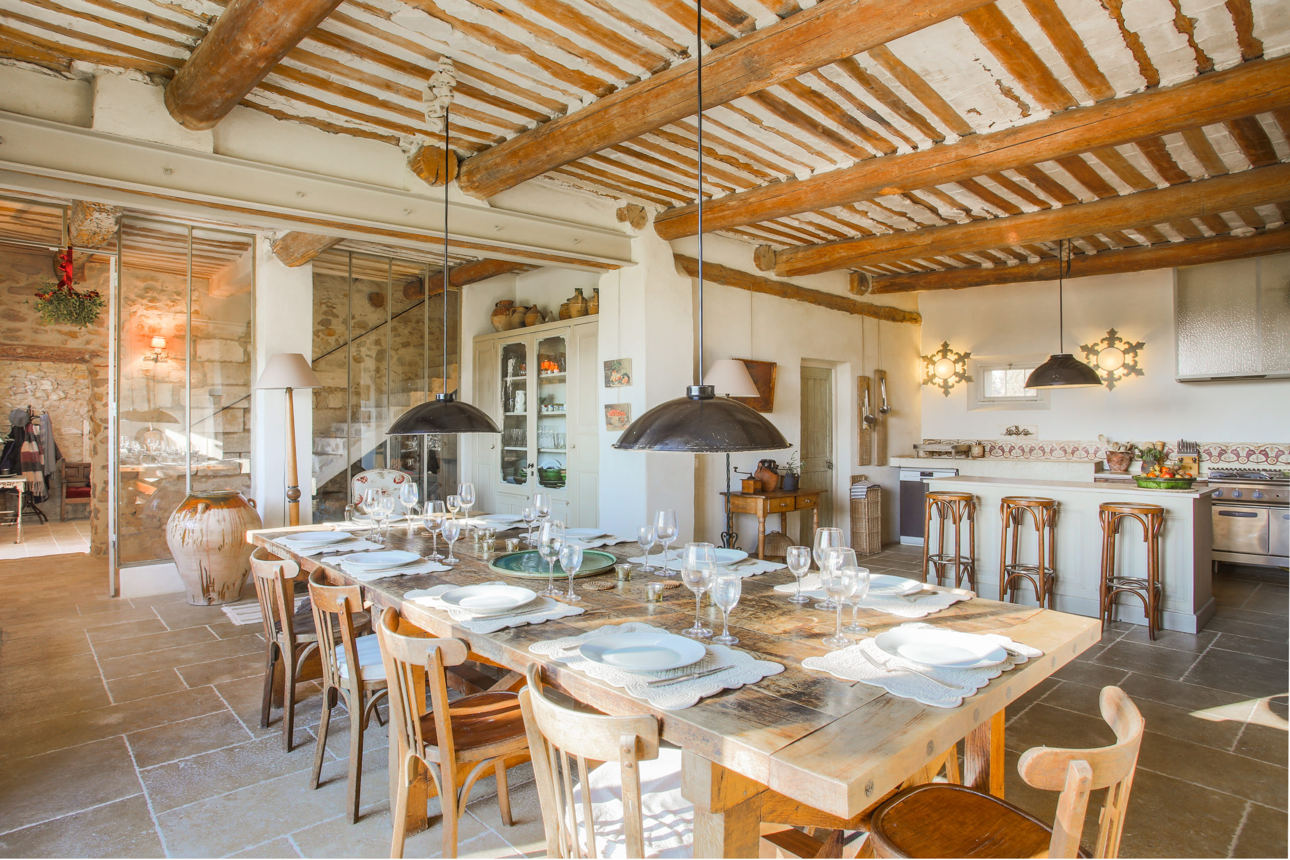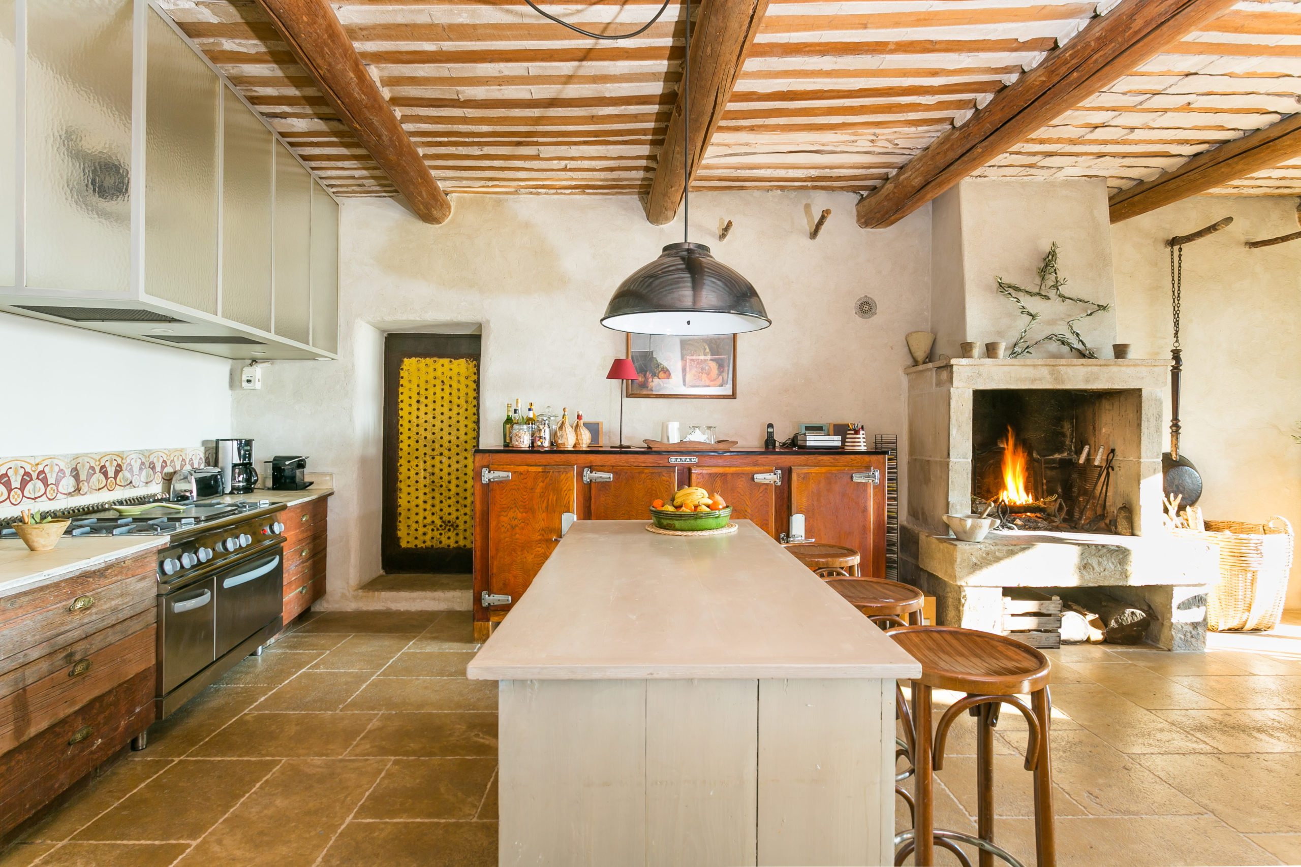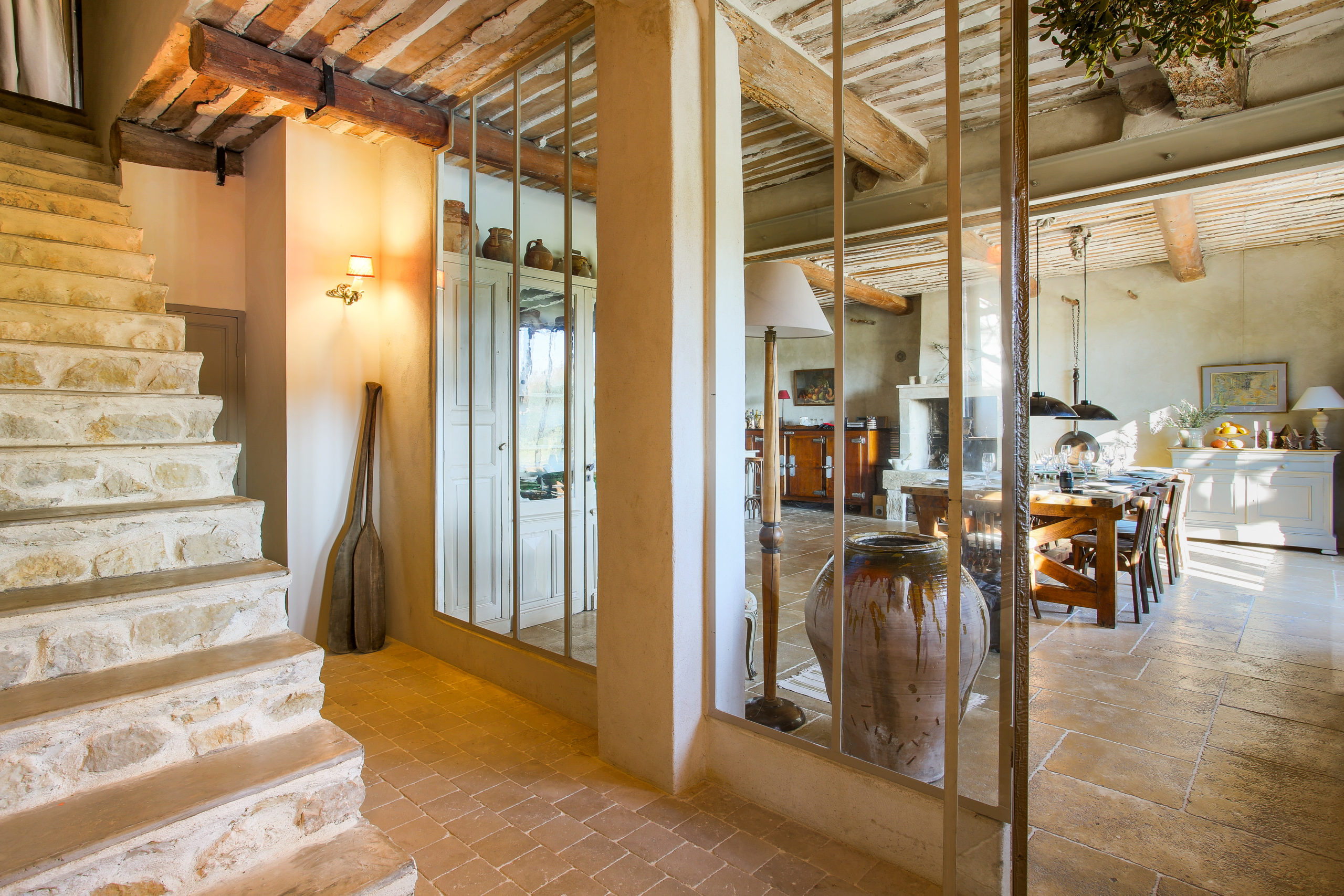 This charming property is located in a quiet area close to L’Isle-sur-la-Sorgue, the little Venice of Provence. It is set on grounds measuring 1.3 hectares where olive trees, white laurels, roses and two magnificent plane trees aged over 300 years blossom. This bright and fully renovated 17th-century former coaching inn has 7 bedrooms, most south-facing, with lovely views over the property, the surrounding plains and the historic Chateau de Thouzon – a 1672 engraved beam and stones from the Chateau make the property even more unique. A large roofed terrace overlooks the 17m x 5m swimming pool. This property is very well located, between L’Isle-sur-la-Sorgue and the nearby TGV station in Avignon.