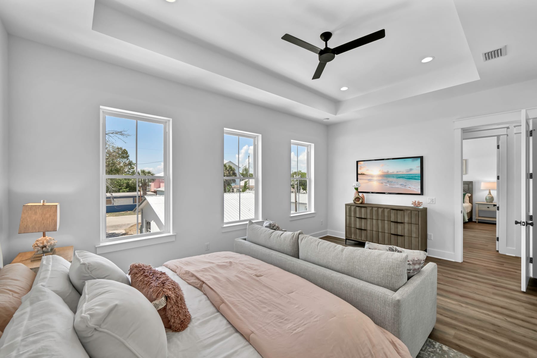 Discover a serene coastal escape just 1.5 blocks from the beach in Panama City Beach with this NEW CONSTRUCTION home. This property, expertly crafted, offers a blend of sophistication and serene beach living with the flexibility of short-term rentals.