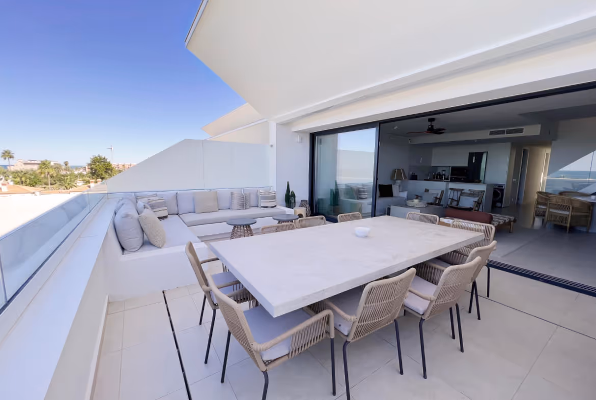 Discover a premier penthouse in the prestigious residential area of Almare in Denia, Costa Blanca. This luxury property is on the beachfront, offering breathtaking sea views that will leave you speechless.