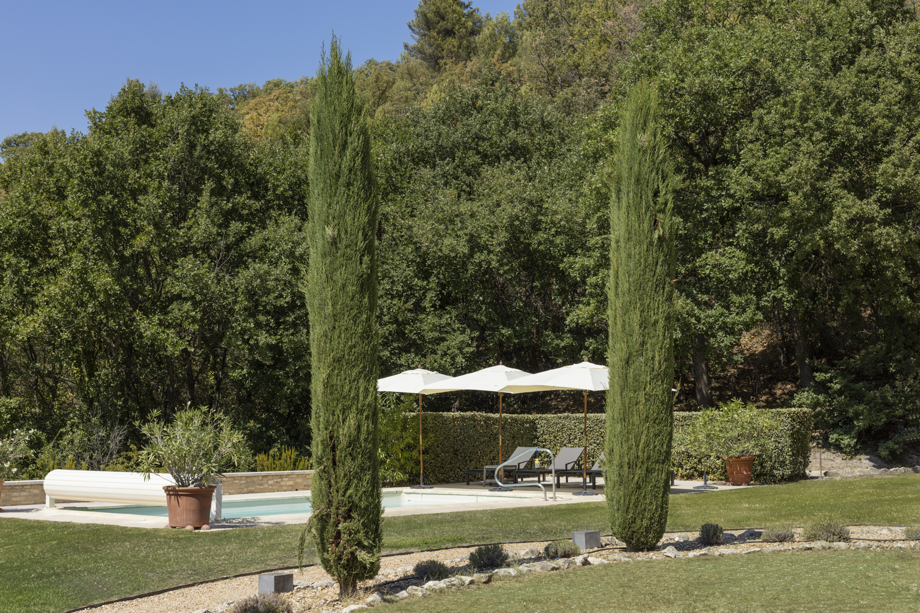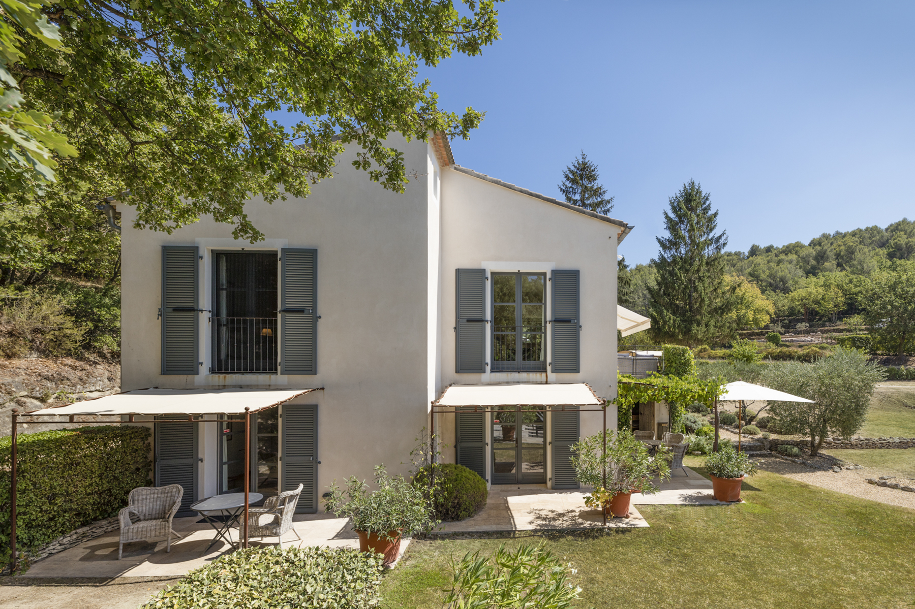 Peaceful countryside home just outside of Ménerbes, one of the most sought after medieval villages perched on the top of a long ridge on the north side of the Luberon mountains and overlooking the surrounding fields, vineyards and orchards. The property is ideally located, less than an hour from Avignon TGV Station and Marseille Airport.