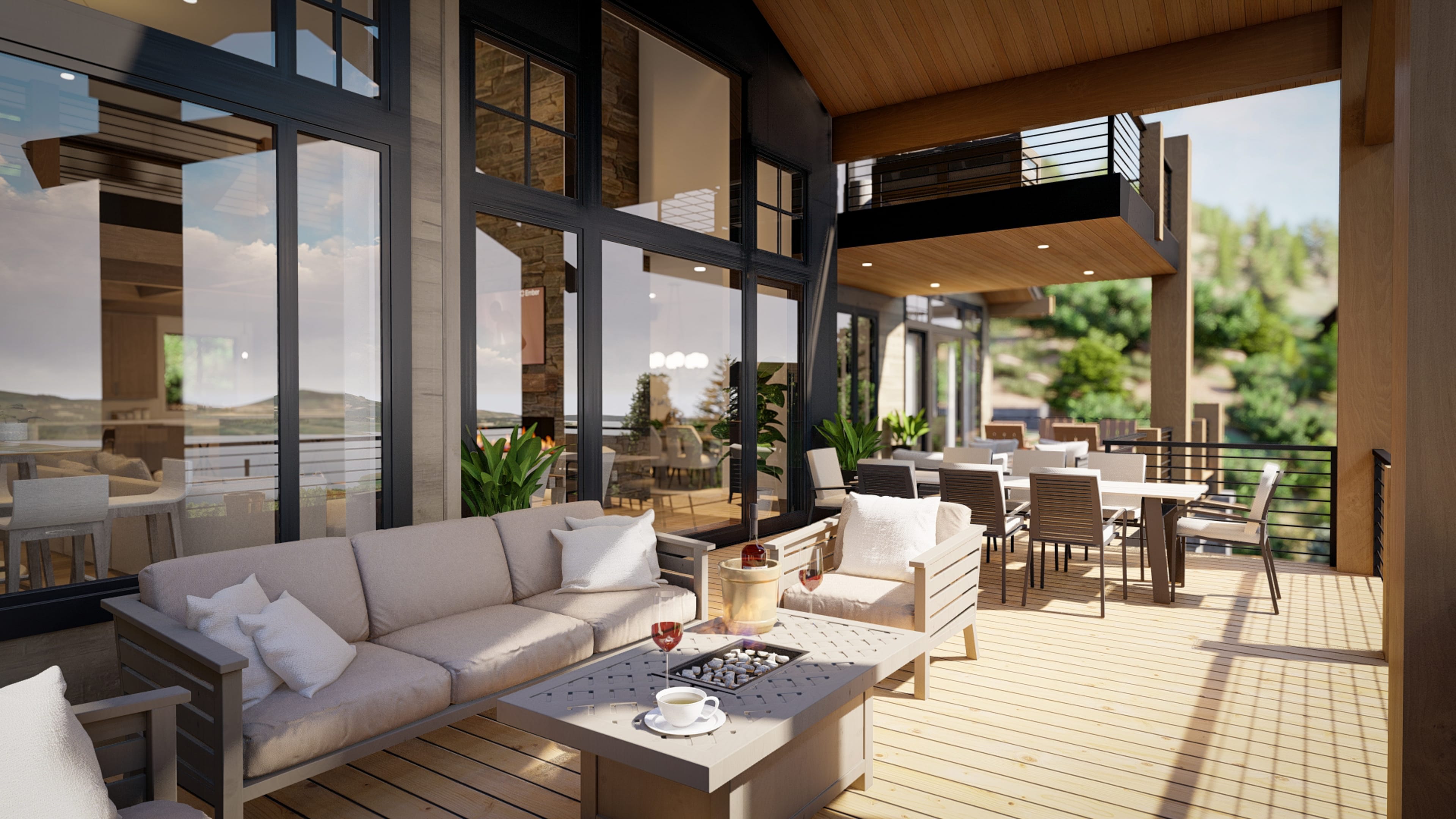 -Outdoor Entertaining Areas: Three covered decks and a large patio with an outdoor kitchen and fire pits create the perfect setting for gatherings.