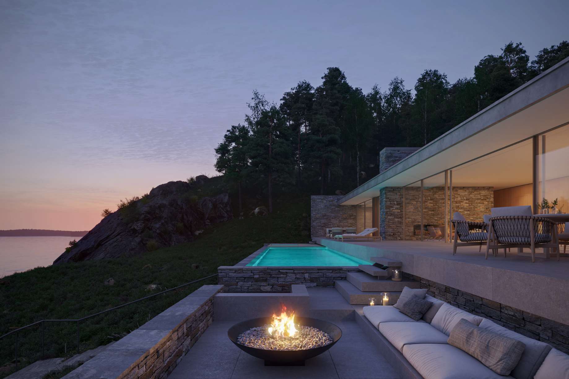 In this high-end new-build villa, you will experience an exceptional combination of impressive nature, exclusivity and luxurious furnishings in the centre of the popular Stockholm archipelago.