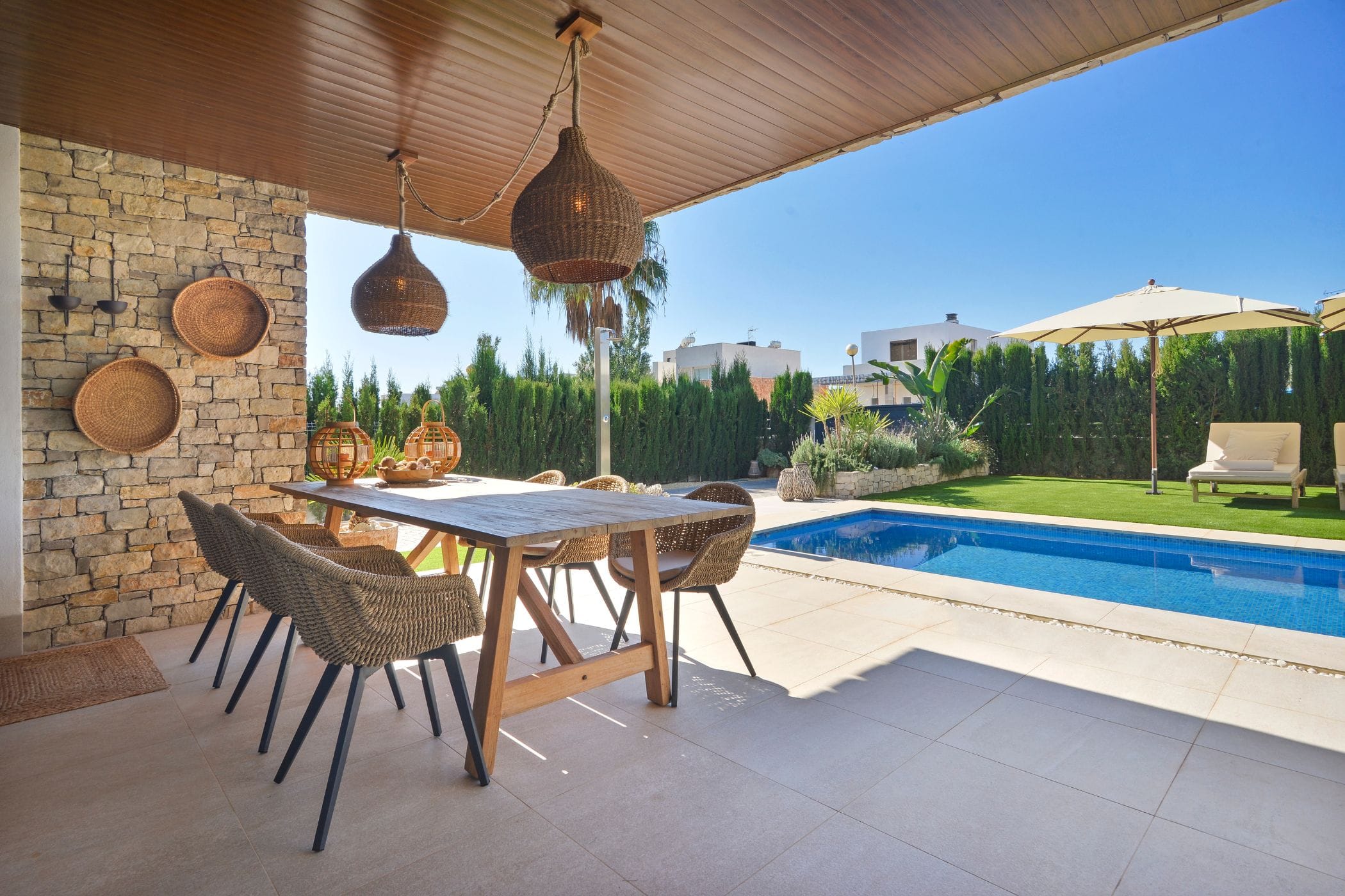 Welcome to your modern villa in Sa Ràpita, just a few minutes' walk from the turquoise waters of Sa Ràpita beach. The famous dream beach Es Trenc is just 15 minutes away by car.