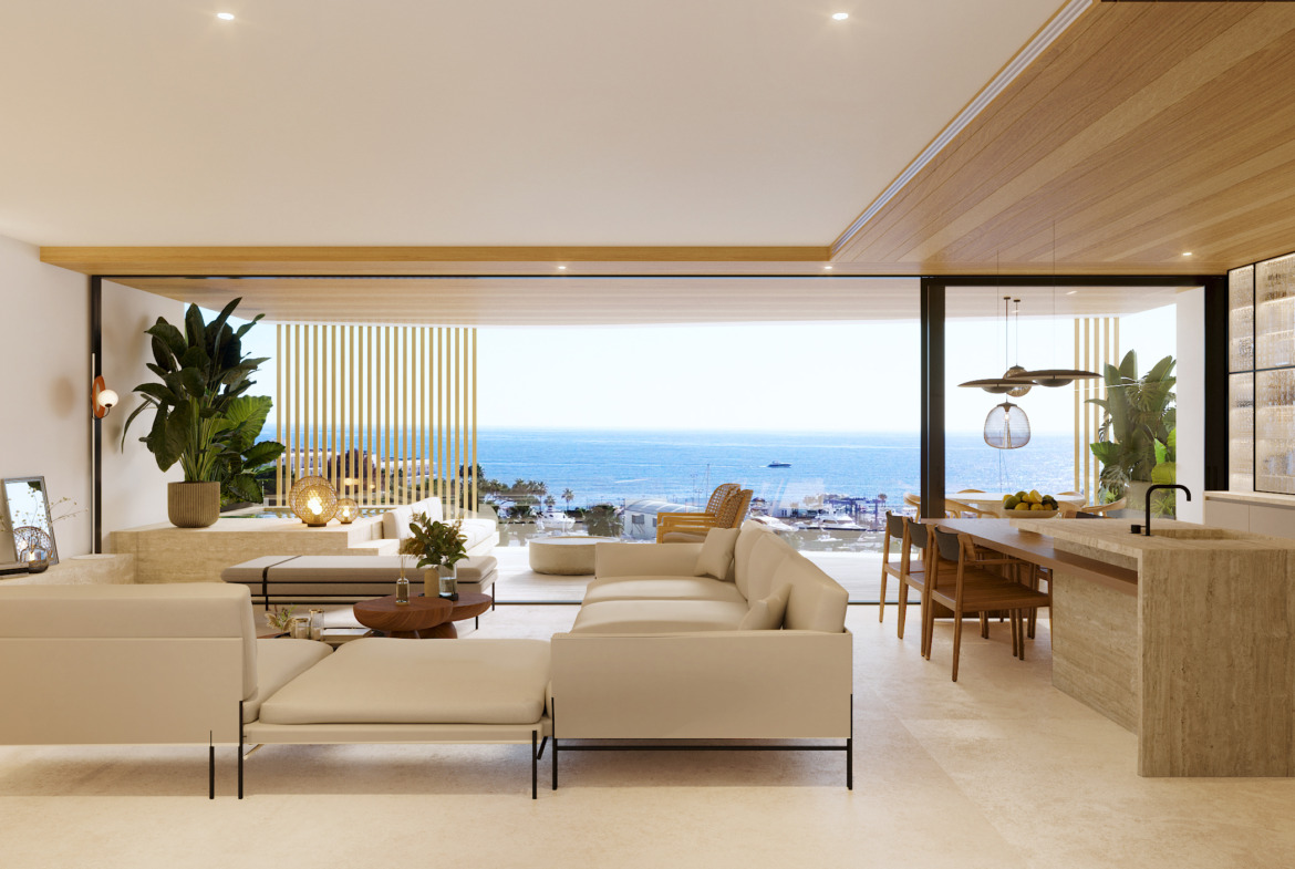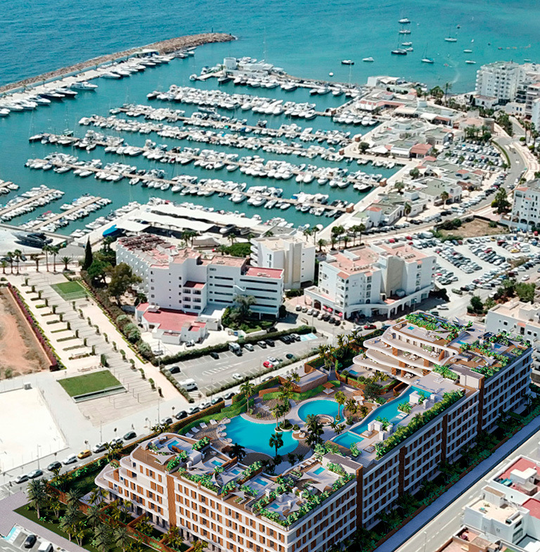 Brand-new terrace apartment boasting sea views, a south-east-facing balcony, multiple pools, a rooftop terrace, and a fitness/wellness center, all just a short stroll from the beach and marina in Santa Eulària.